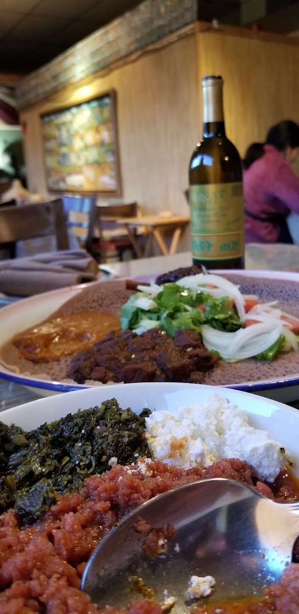 The menu leans heavily into classic Ethiopian comfort food, with injera taking center stage. Injera is a fermented flatbread made from teff, a grain that the Ethiopian Institute of Agricultural Research has long highlighted for its high iron and fiber content. Watching servers lay out a large platter layered with injera and topped with colorful stews is part of the experience. Dishes like doro wot, misir wot, and tibs arrive meant for sharing, and the process of tearing injera by hand and scooping up each bite creates a natural rhythm at the table. It’s communal dining in the truest sense, something nutrition researchers often note helps people eat more mindfully and enjoy meals longer.